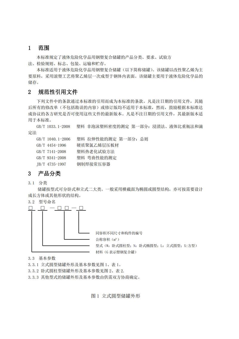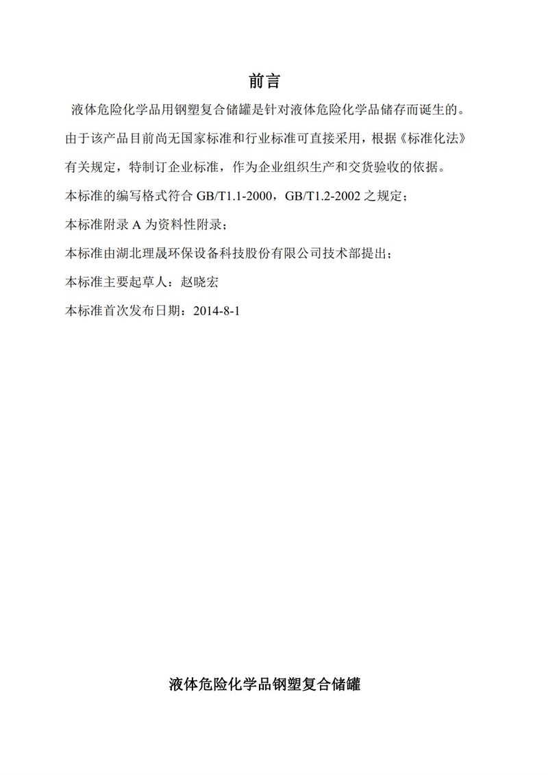 液态危险化学品用钢塑复合储罐企业标准点击查看:钢衬塑储罐企业标准